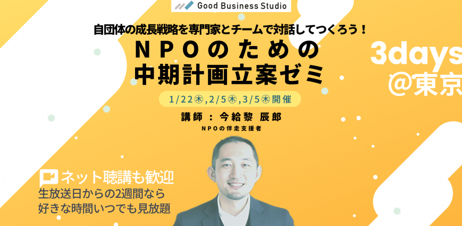 【東京・オンライン開催】自団体の成長戦略を専門家とチームで対話してつくろう!「NPOのための中期計画立案ゼミ」(NPO サポートセンター主催)