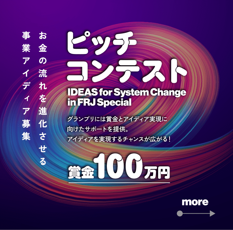 第2部では、各分野で新しい社会のお金の流れに挑むトップランナーが、これからの挑戦を紹介します。さらに、FRJスペシャル注目の特別企画「ピッチコンテスト」のファイナル3が、最終プレゼンテーションへの意気込みを語ります。-