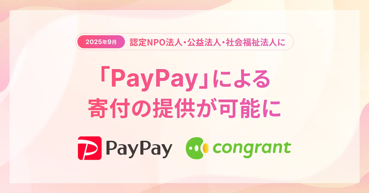 その一つとして、コングラントはPayPay株式会社との契約に基づき、対象法人が個別にPayPay法人向けビジネスアカウントを契約することなく、コングラント上で「PayPay」による寄付を受け付けられる仕組みを実現しました。