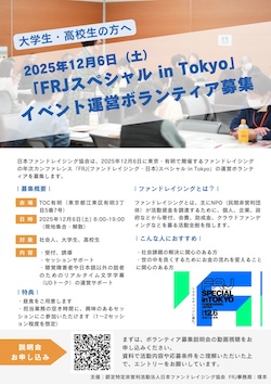 「FRJスペシャル in Tokyo」を、私たちと一緒に作り上げてくださる運営ボランティアを募集しています。皆さまのご応募をお待ちしています!